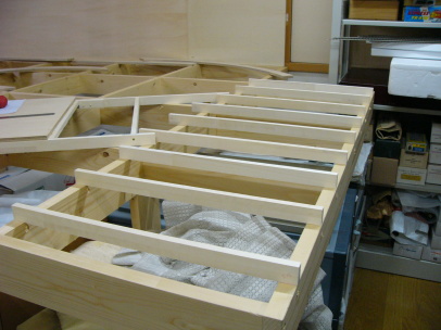 客車ヤードの終端部と本線エンドレスの一部の台枠工事中です。 ベースの上に30mmX13mmの角材を使って中間の補強やライザーを取り付けていきます。 この上に路盤となる12mmのシナベニアをネジ止めします。