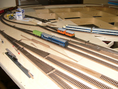 本線は12mm合板製の路盤の上にコルク道床を接着しています。
