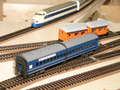 テスト車輌は、サウンド付きのサンタフェの2-10-0(バックマン製)と40年前に購入した0系新幹線(カツミ)