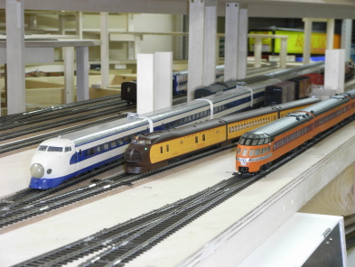 2008年12月31日から2009年1月1日にかけての年越し運転を終え、ヤードに休む車輌。 左から、 0系新幹線(カツミ製) M−10000(コンコア製) ハイアワッサ(ウォルサー製)