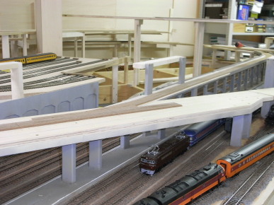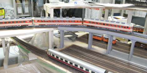 客車が停車している直線部分がメルクリン用のホームの予定地