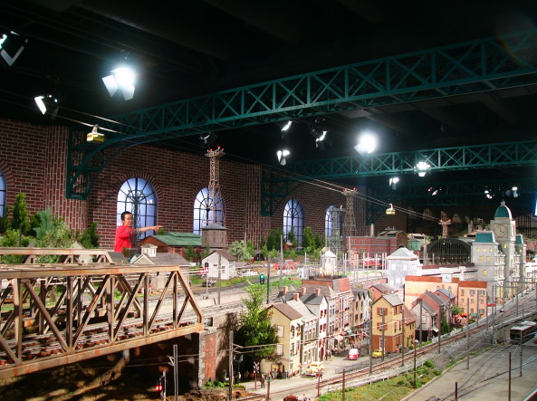 世界的に見ても一般公開されている1番ゲージのレイアウトでは最大級の規模で、長い直線区間を列車が走行する様は壮観。