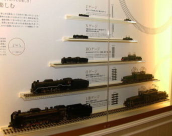 レストコーナーには、鉄道模型各サイズの比較